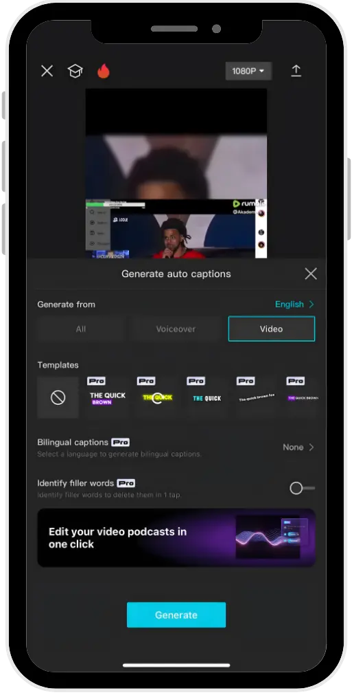 - Auto Captions: It automatically converts spoken words into text and adds subtitles to videos. This saves time and helps viewers understand content clearly, even without sound.